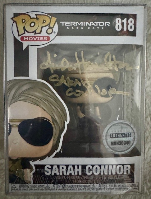 #818 Pop Movies Terminator Dark Fate Sarah Connor Signed in Gold Pen – Comic Con Midlands Telford @ Telford International Centre