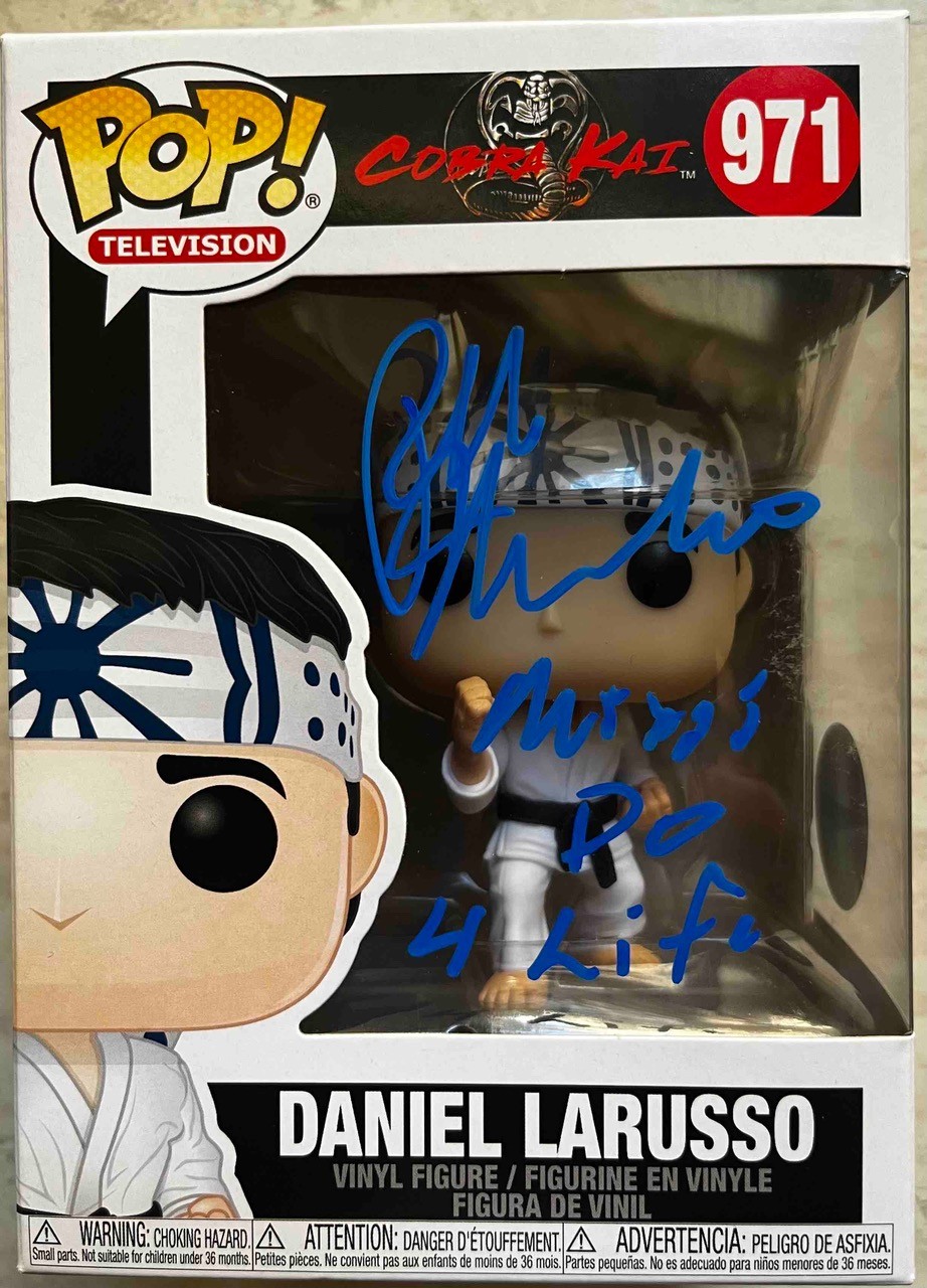 #971 Pop Television Cobra Kai Daniel Larusso Signed in Blue Pen – Comic Con Liverpool @ Exhibition Centre Liverpool