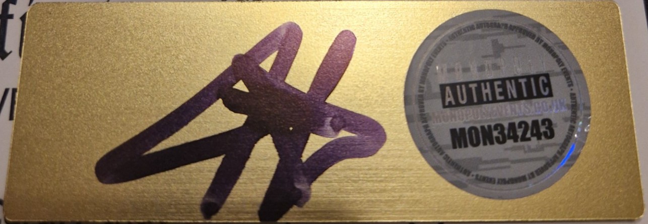 Metal Plaque Signed in Black Pen – Comic Con Liverpool @ Exhibition Centre Liverpool