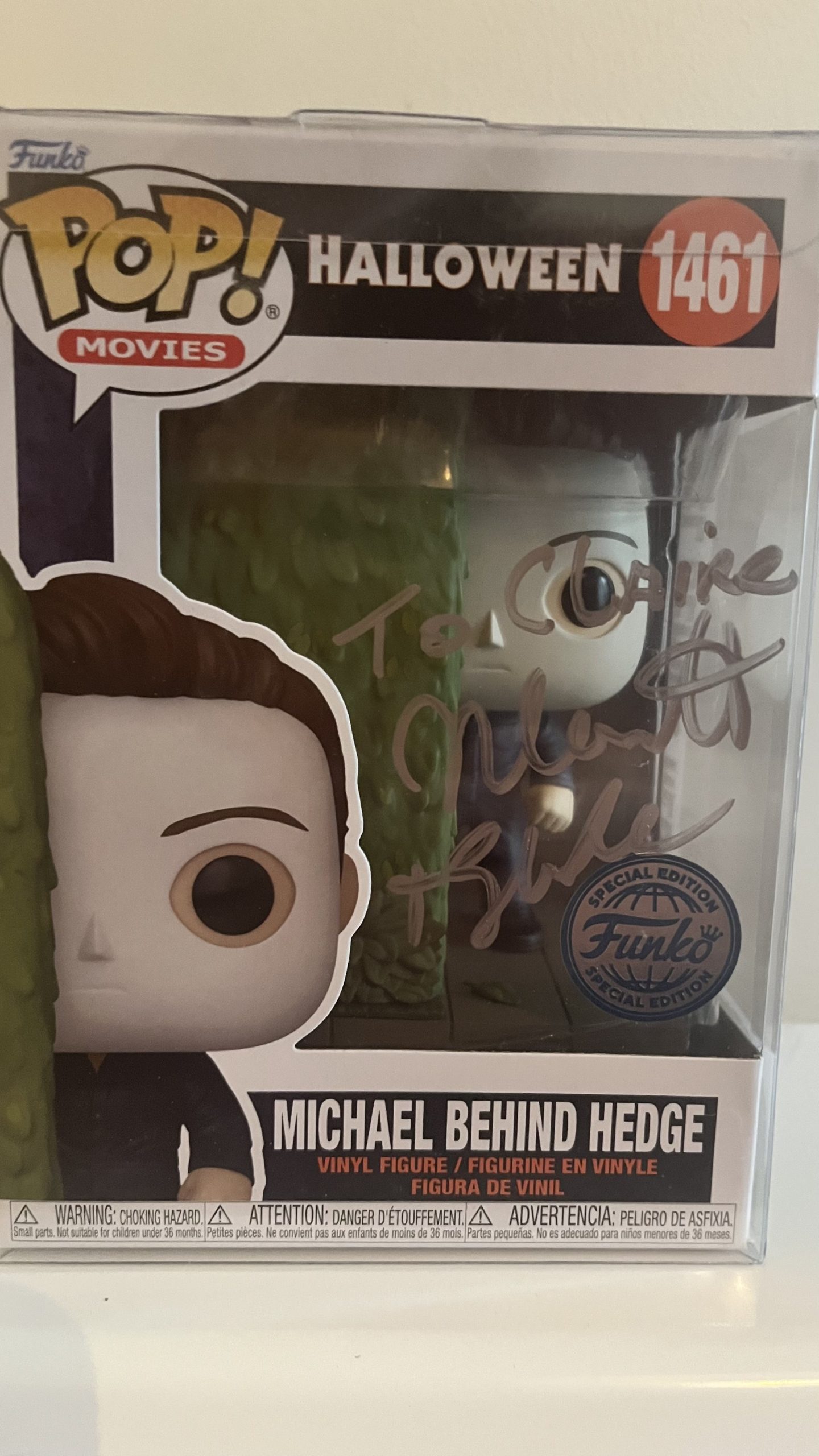#1461 pop Movies Halloween Michael Behind Hedge Signed in Silver Pen – For The Love of Horror @ BEC Arena Manchester
