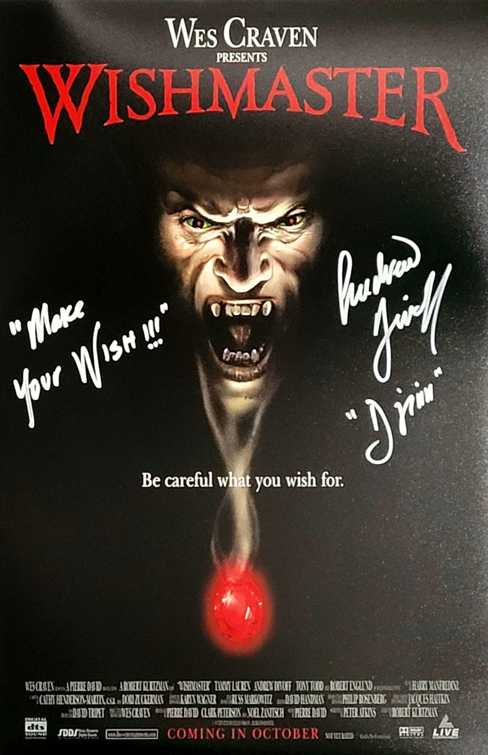 12 inch x 18 inch Wishmaster poster Signed in White Pen – Comic Con Midlands @ Telford International center