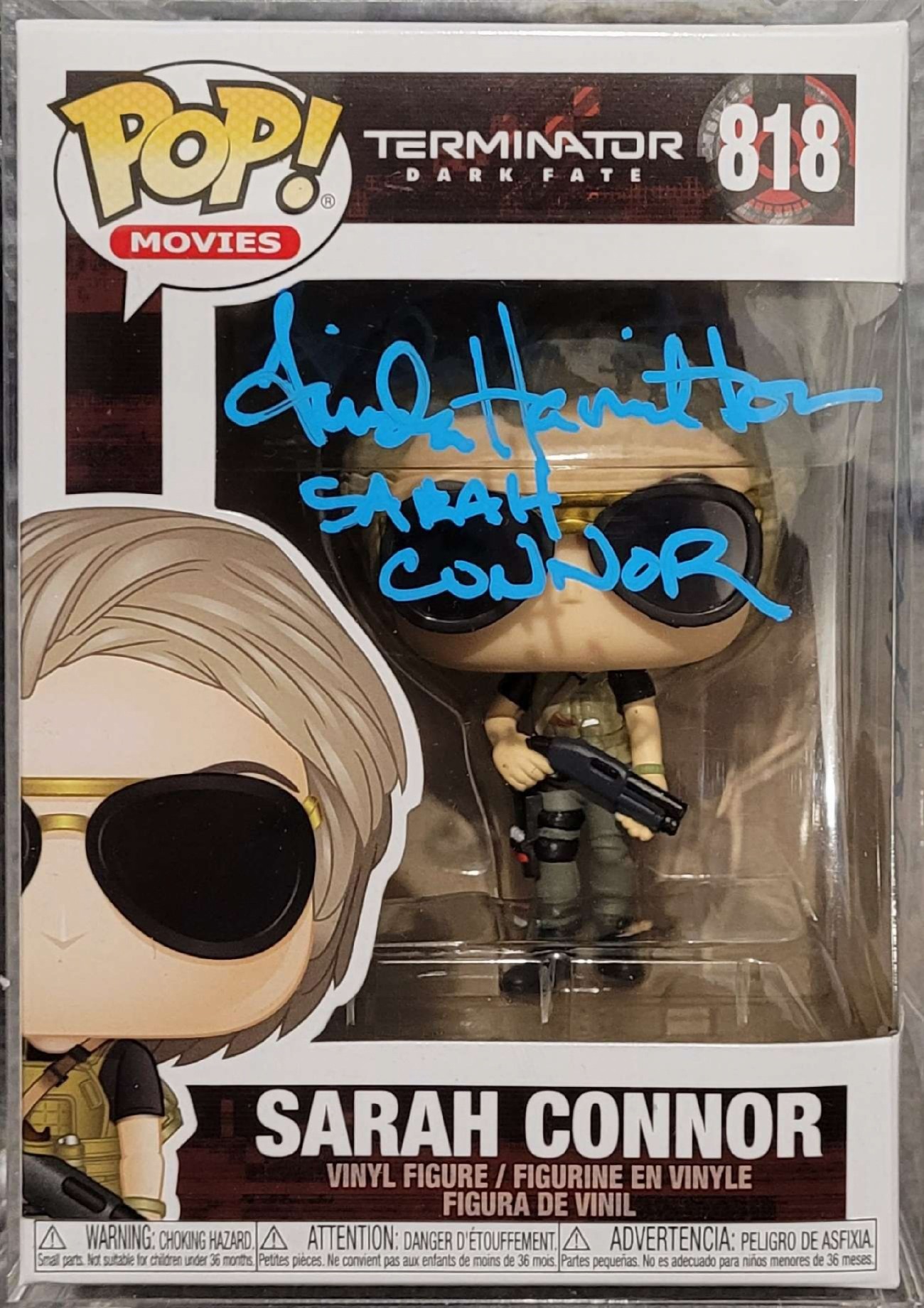 #818 Pop Movies Terminator Dark Fate Sarah Connor Signed in Blue Pen – Comic Con Midlands @ Telford International center