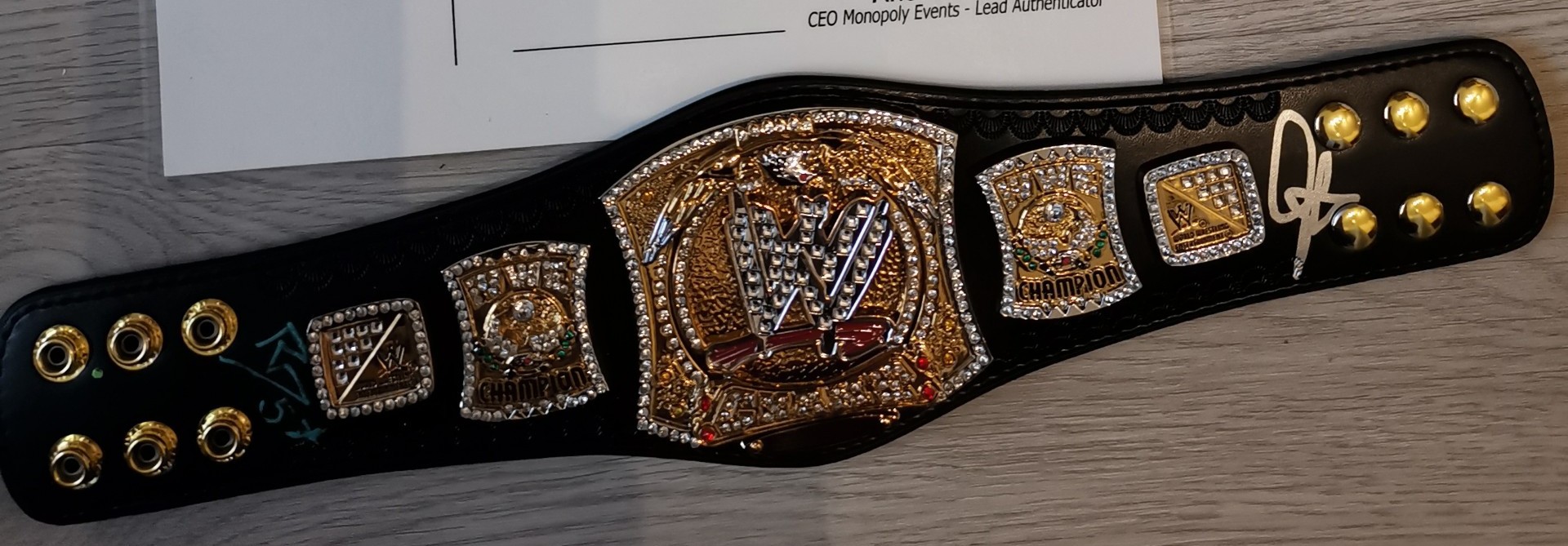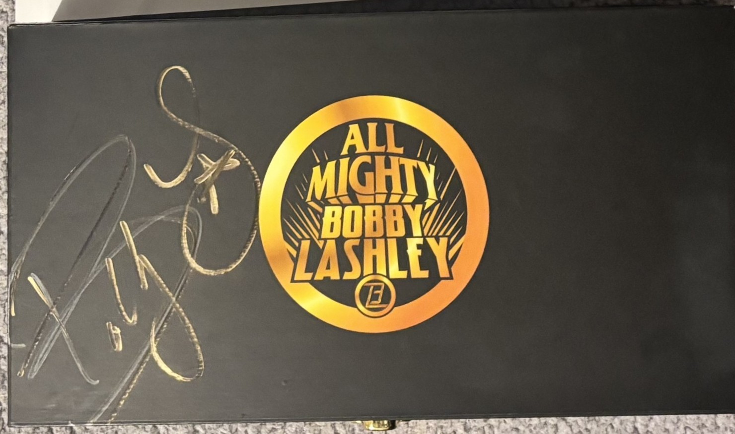 Collectible box WWE Bobby Lashley “All Mighty” side plates for a championship belt Signed in Gold Pen – For The Love of Wrestling @ BEC Arena Manchester