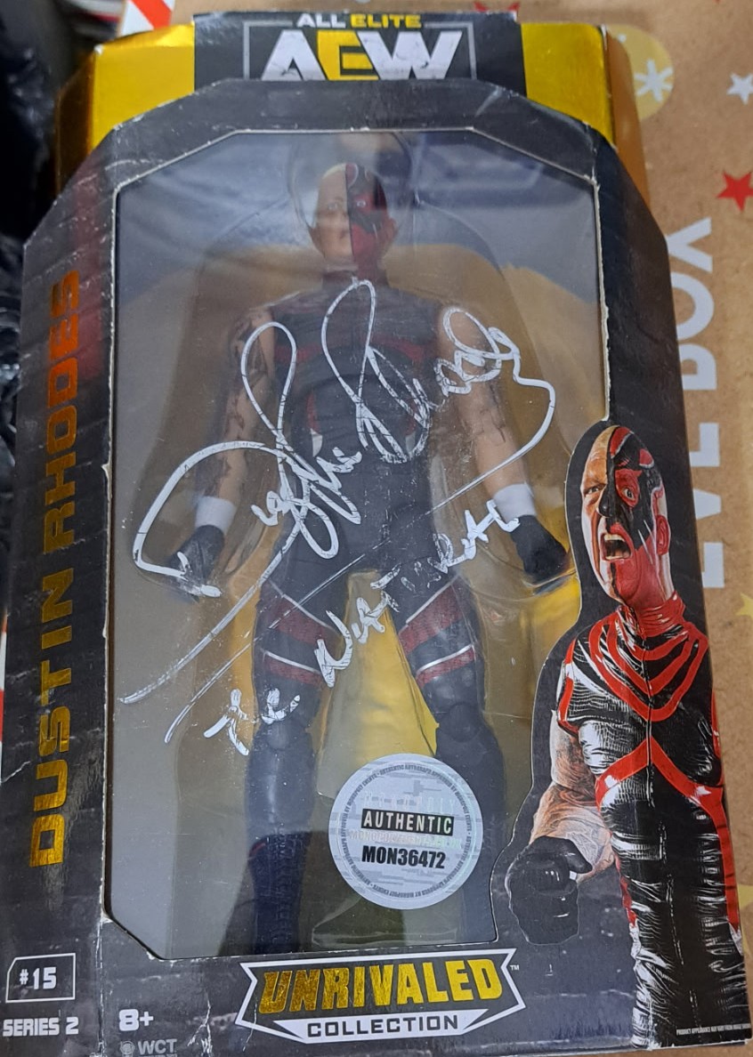 AEW Unrivaled Collection Series 2 Dustin Rhodes action figure Signed in Silver Pen – For The Love of Wrestling @ BEC Arena Manchester