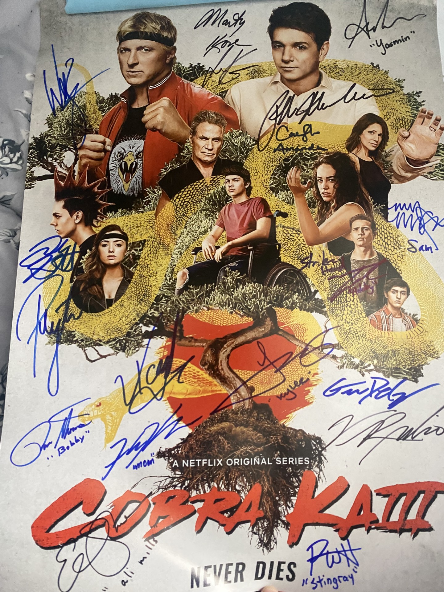 Cobra Kai Poster Signed in Blue and Black Pen – Private Signing & Comic Con Liverpool @ Exhibition Centre Liverpool