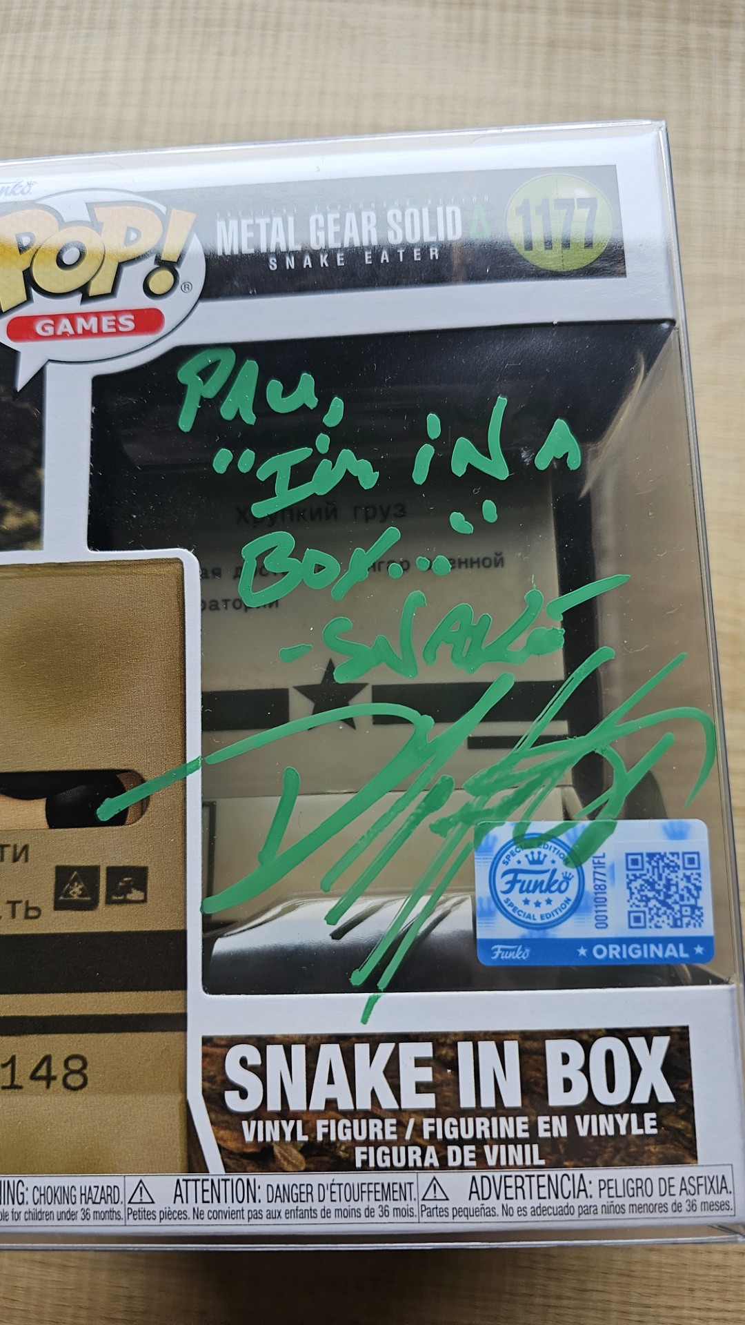 #1177 Pop Games Metal Gear Solid Snake Eater Snake in Box Signed in Green Pen – Comic Con Scotland Abadeen @ P&J Live