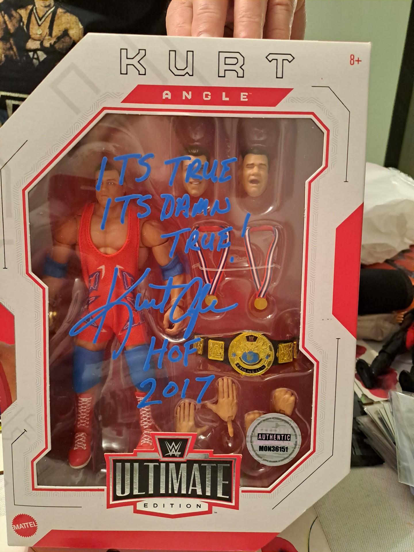 WWE Ultimate Edition Series 19 Kurt Angle action figure Signed in Blue Pen – For The Love of Wrestling @ BEC Arena Manchester