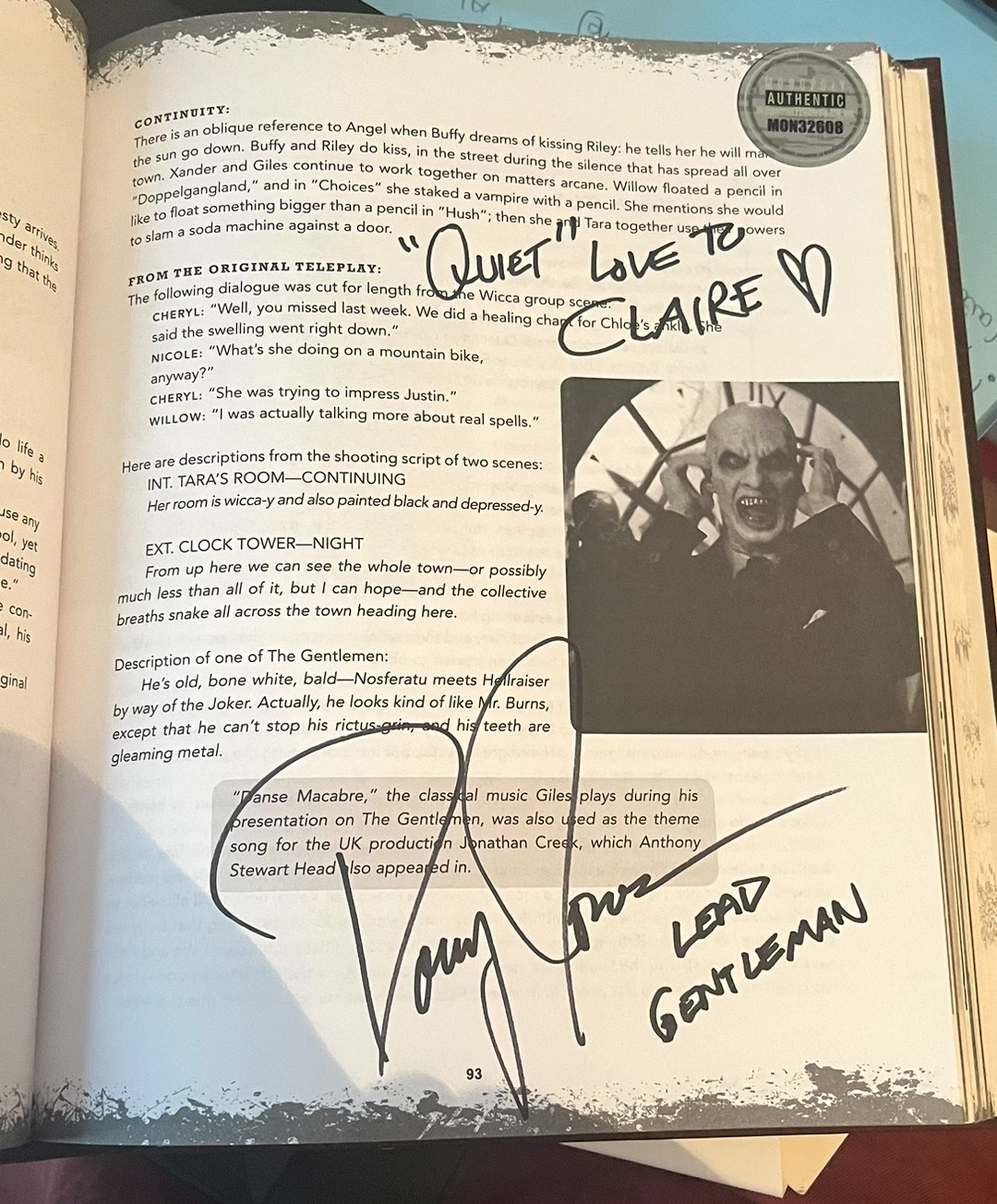 Buffy The Vampire Slayer Book Page Signed in BLack Pen – For The Love of Horror @ BEC Arena Manchester