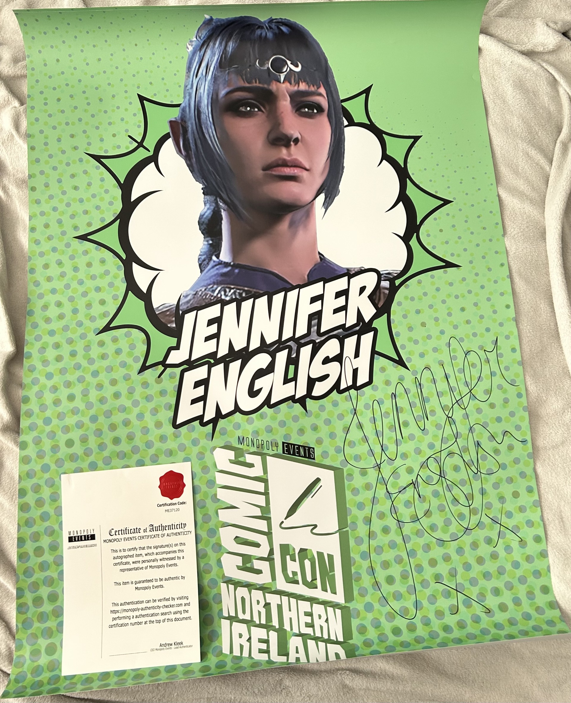 Jennifer English – MON37120 April 15, 2026 by joelAdmin Event Banner Signed in Black Pen – Comic Con Northern Ireland @ Eikon Exhibition Centre