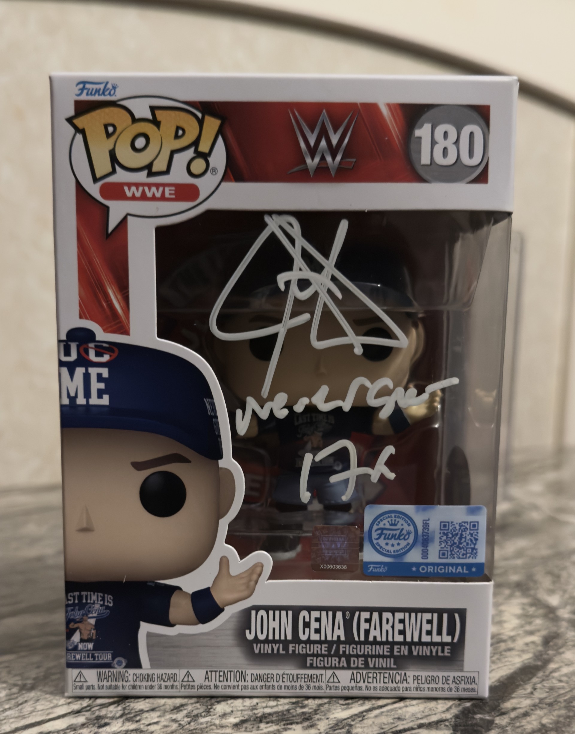 John Cena – MON34206 December 1, 2025 by joelAdmin #180 Pop WWE John Cena (Farewell) Signed in White Pen – Comic Con Liverpool @ Exhibition Centre Liverpool