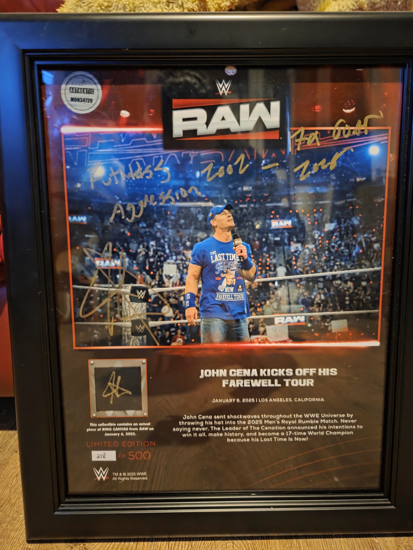 WWE Raw John Cena Kicks Off His Farewell Tour Framed Print 218/500 Signed in Gold Pen – Comic Con Liverpool @ Exhibition Centre Liverpool