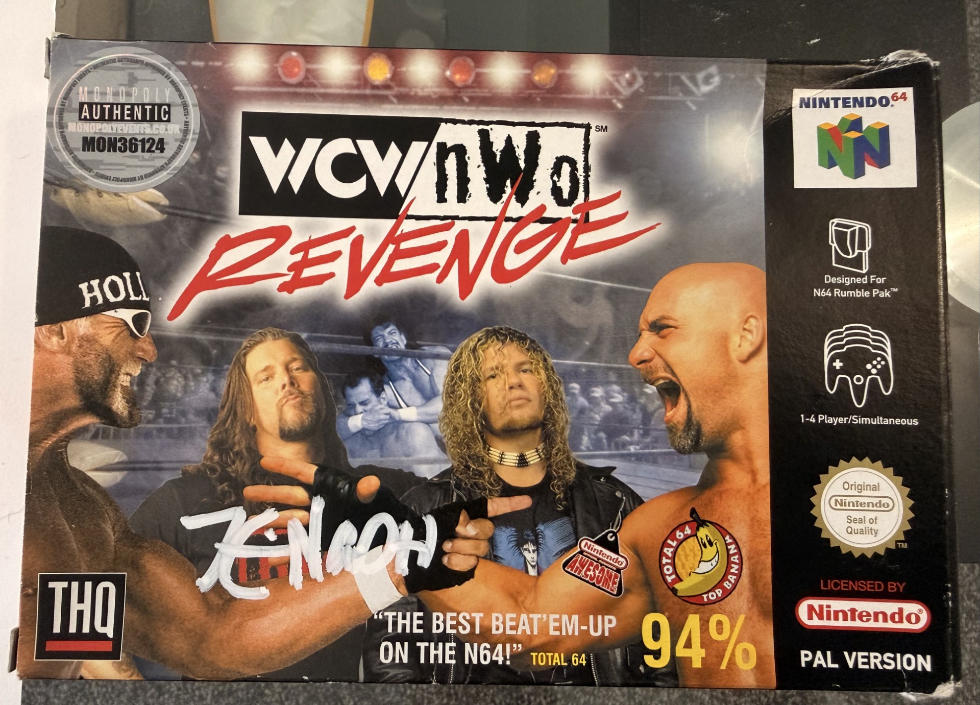 Kevin Nash – MON36124 March 19, 2026 by joelAdmin WCW/nWo Revenge video game for the Nintendo 64 Signed in White Pen – For The Love of Wrestling @ BEC Arena Manchester