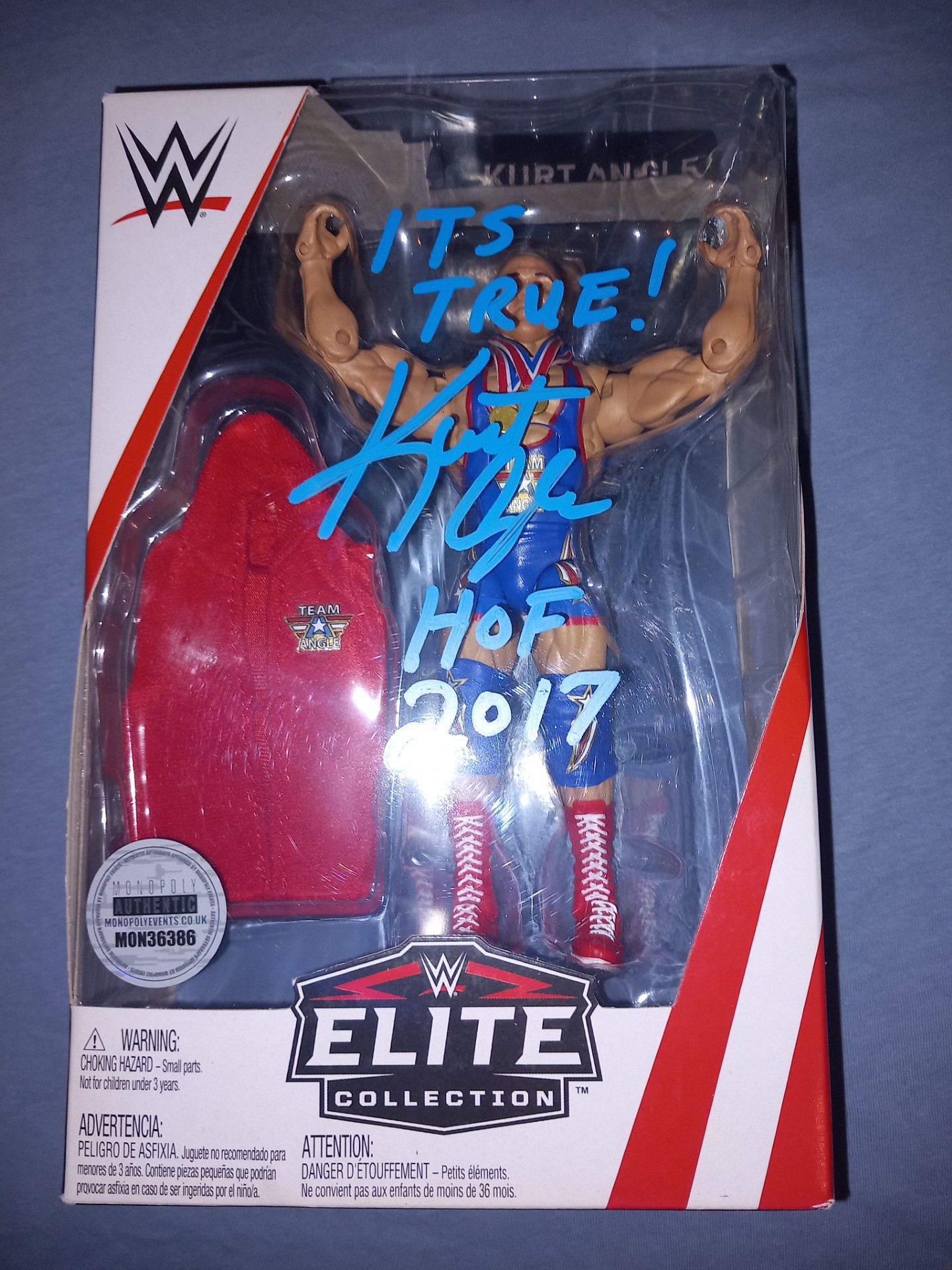 Kurt Angle – MON36386 March 4, 2026 by joelAdmin WWE Elite Collection Kurt Angle Action Figure Signed in Blue Pen – For The Love of Wrestling @ BEC Arena Manchester