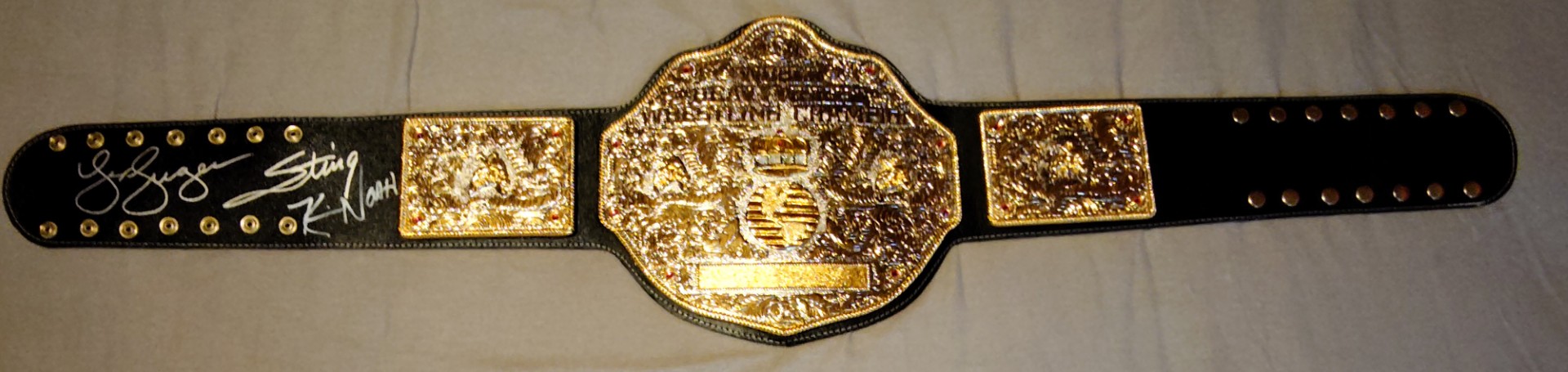 Championship Big Gold World Heavyweight Championship Replica wrestling Belt Signed in Silver Pen – – For The Love of Wrestling @ Bowlers Exhibition Centre