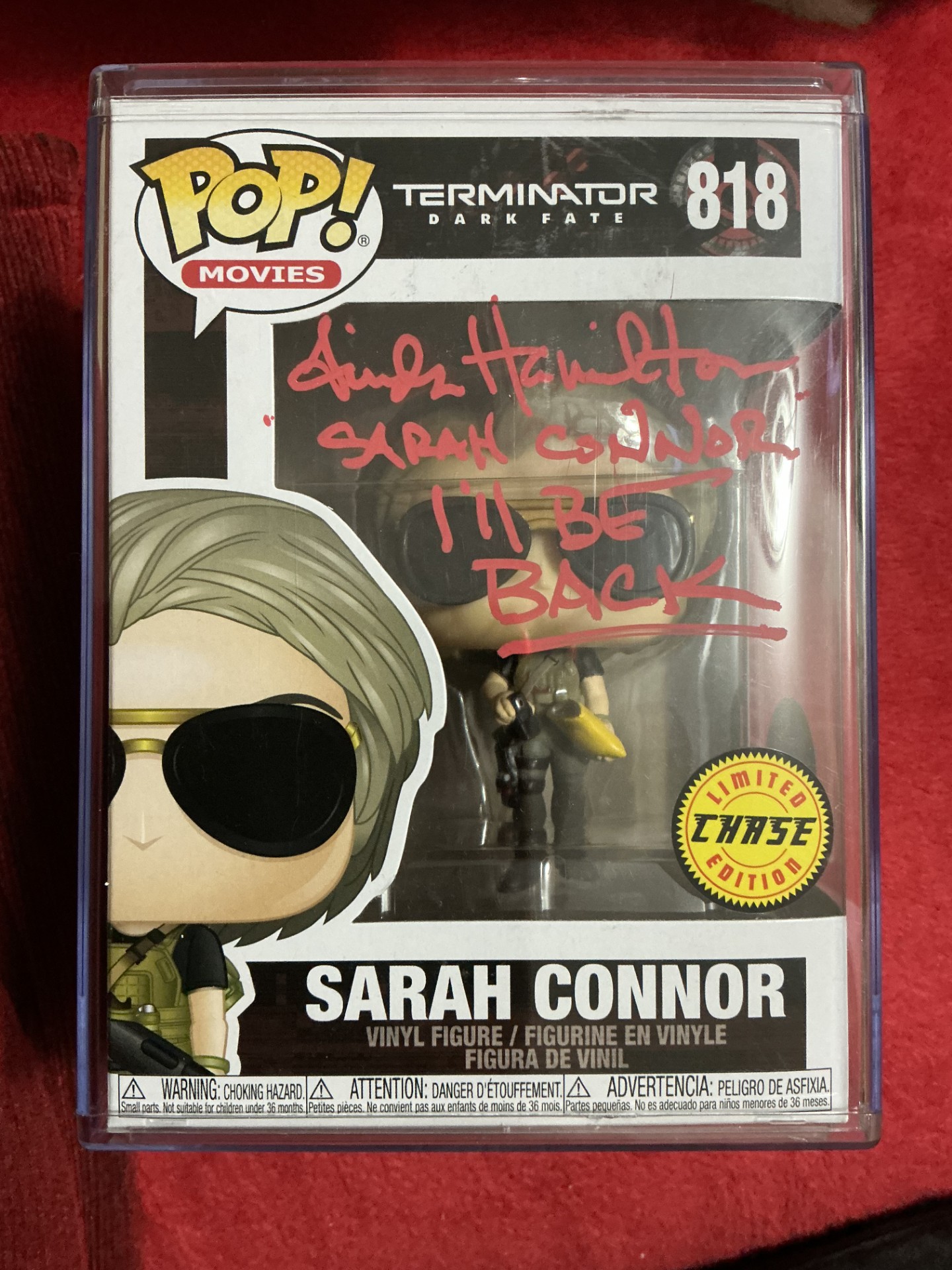 #818 Pop Movies Terminator Dark Fate Sarah Connor Chase Signed in Red Pen – Comic Con Midlands Telford @ Telford International Centre