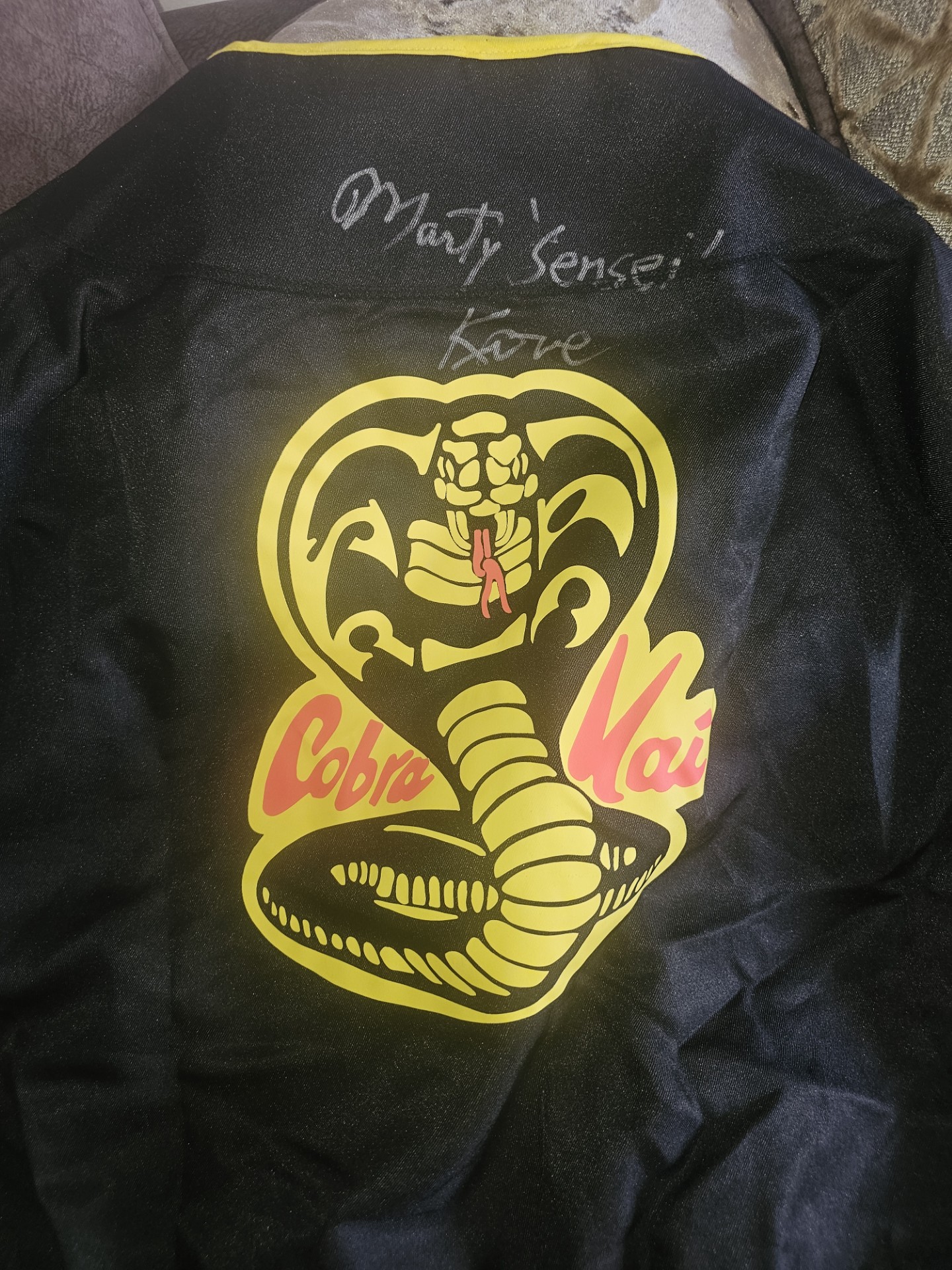 Martin Kove – MON37125 April 9, 2026 by joelAdmin Kobra Kai (Karate Kid) Dojo Gi Top Signed in Silver Pen – Comic Con Scotland Aberdeen @ P&J Live