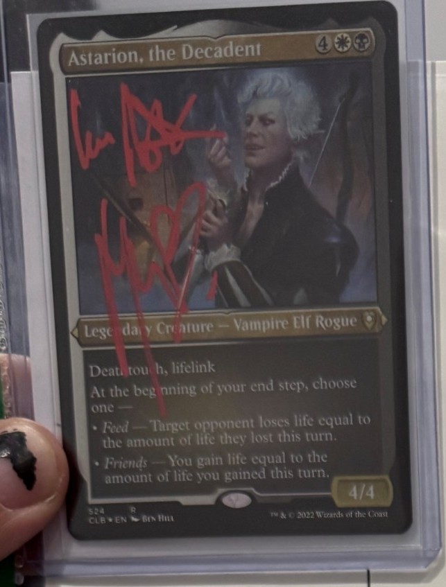 Astarion, the Decadent Magic: The Gathering Card From the Commander Legends: Battle for Baldur’s Gate set Signed in Red Pen – – Comic Con Scotland @ The Royal Highland Centre