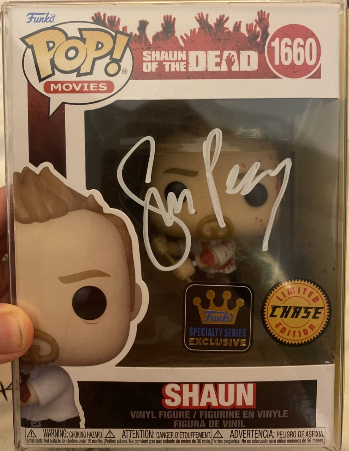 Simon Pegg – MON32318 November 12, 2025 by joelAdmin #1660 Pop Movies Shaun of The Dead Chase Signed in White Pen – For The Love of Horror @ BEC Arena Manchester