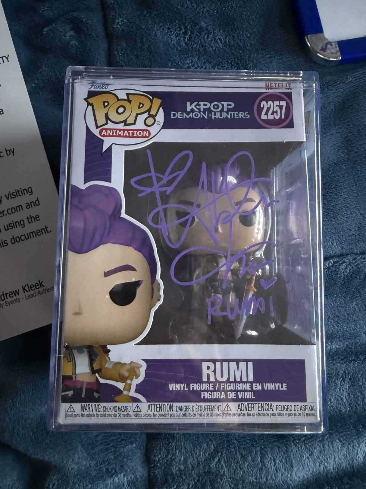 #2257 Pop Animation K-POP Demon Hunters Rumi Signed in Purple Pen – For The Love of Anime @ BEC Arena Manchester