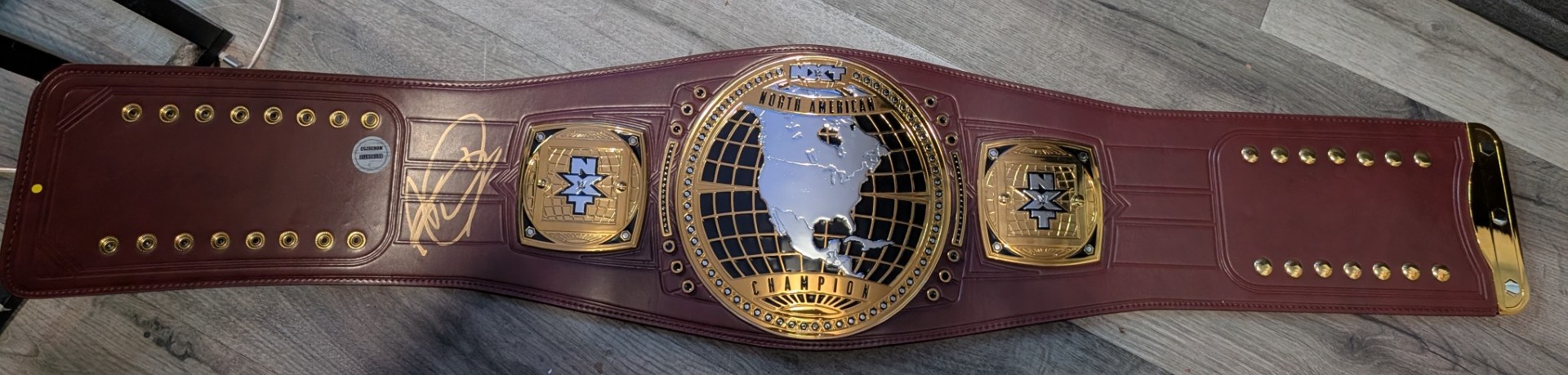 NXT North American Championship Replica Title Belt Signed in Gold Pen – For The Love of Wrestling @ BEC Arena Manchester