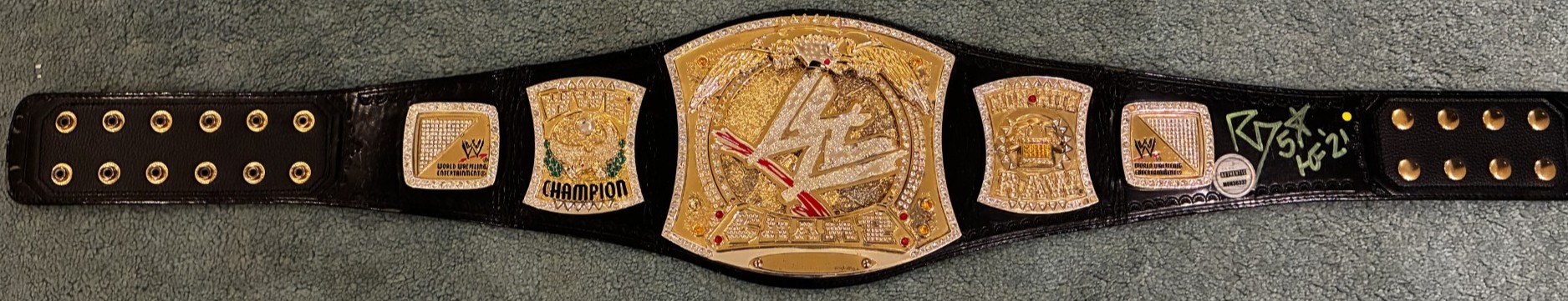 WWE Championship Spinner Replica Title Belt Signed in Green Pen – For The Love of Wrestling @ BEC Arena Manchester