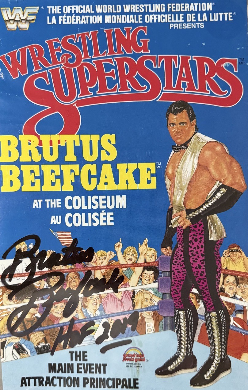 LJN WWF Wrestling Superstars mini poster featuring Brutus “The Barber” Beefcake Signed in Black Pen – For The Love of Wrestling @ BEC Arena Manchester