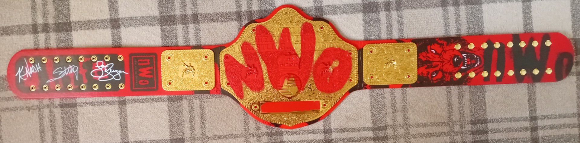NWO Wolfpac Signature Series Championship Replica Title Belt Signed in Silver Pen – For The Love of Wrestling @ BEC Arena Manchester