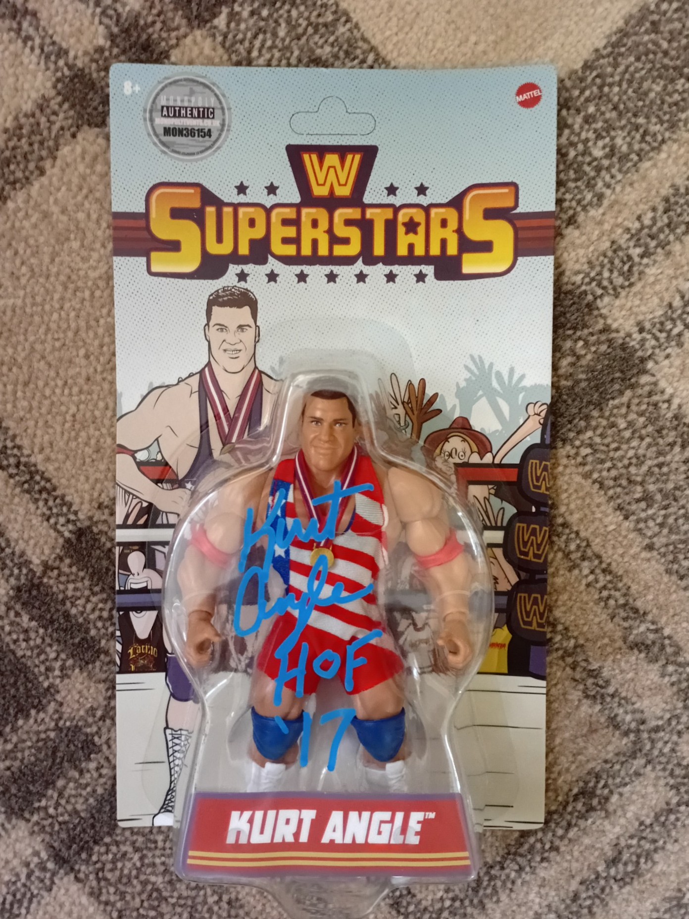 WWE Superstars Series #10 Kurt Angle Action Figure Signed in Blue Pen – For The Love of Wrestling @ BEC Arena Manchester