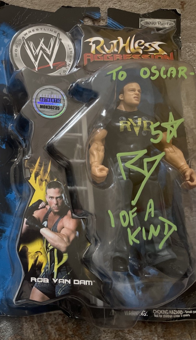 Jakks Pacific Ruthless Aggression Series 3 Rob Van Dam Action Figure Signed in Green Pen – For The Love of Wrestling @ BEC Arena Manchester
