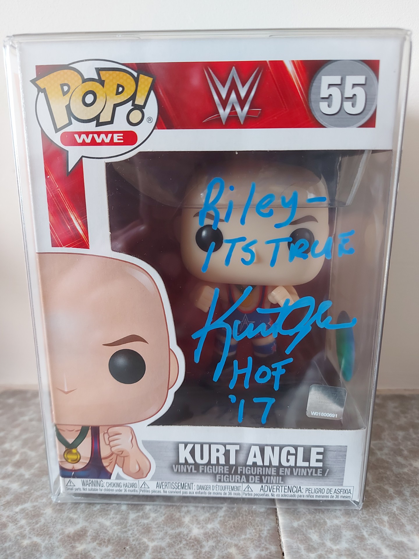 #55 Pop WWE Kurt Angle Signed in Blue Pen – For The Love of Wrestling @ BEC Arena Manchester
