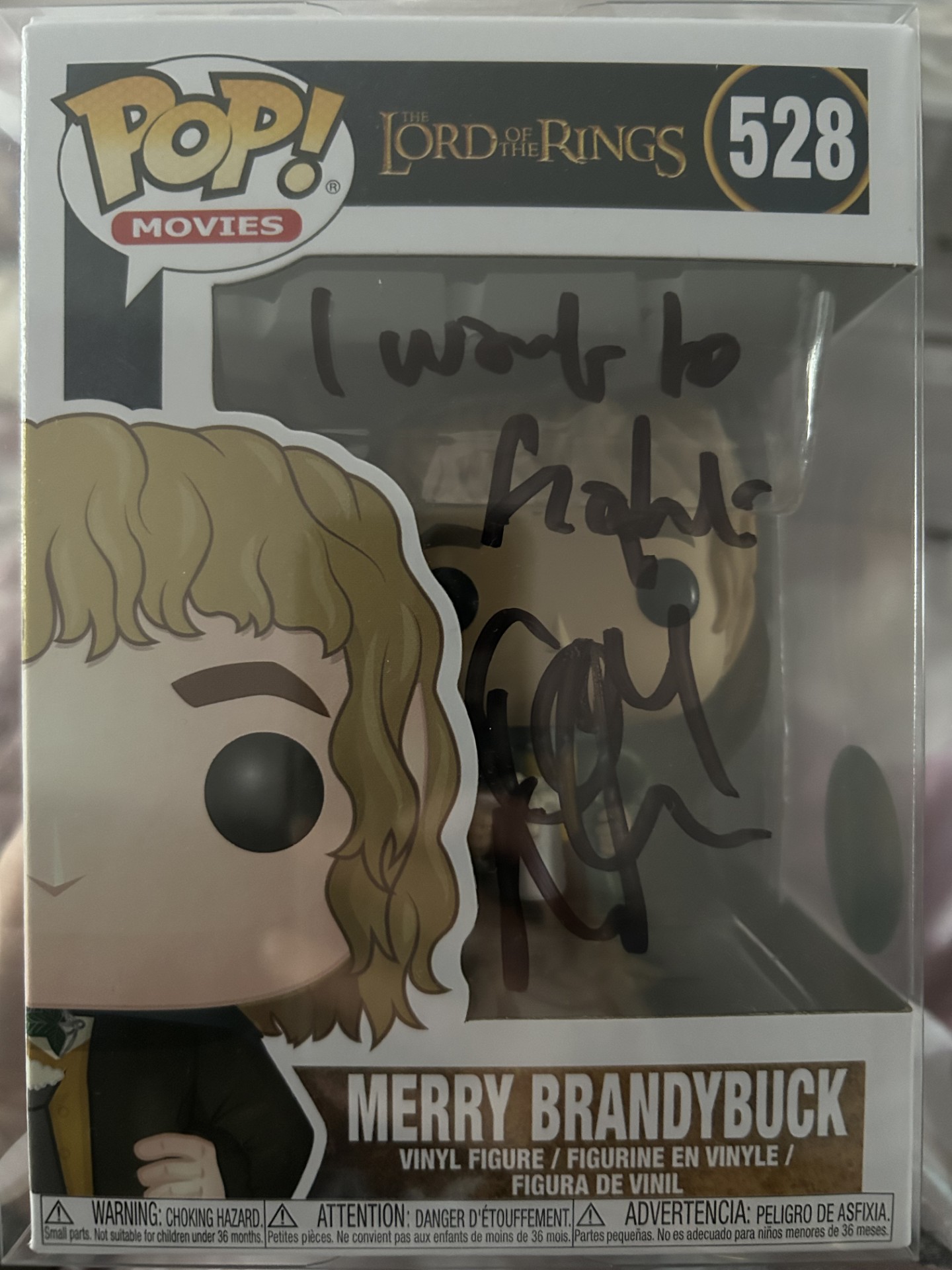 #528 Pop Movies The Lord of The Rings Merry Brandybuck Signed in Black Pen – For The Love of Fantasy @ ExCel London